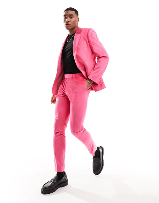 ASOS DESIGN - Costume ajusté effet velours - Rose