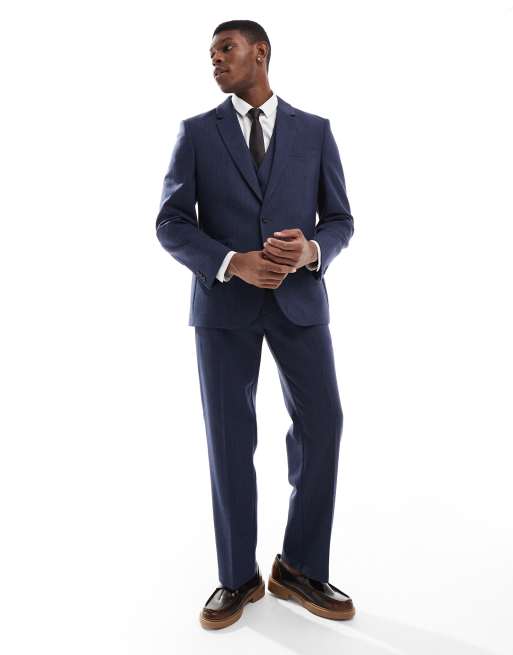 ASOS DESIGN - Costume ajusté en laine à chevrons - Bleu
