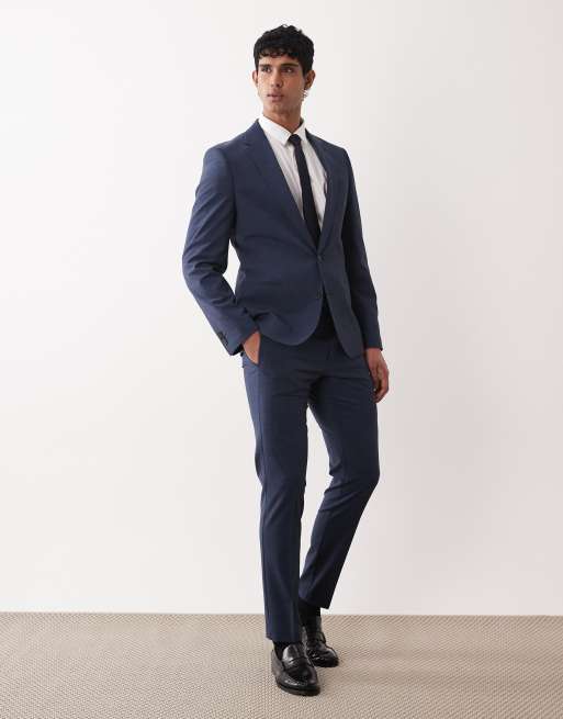 ASOS DESIGN - Costume ajusté en laine lavable en machine - Bleu marine