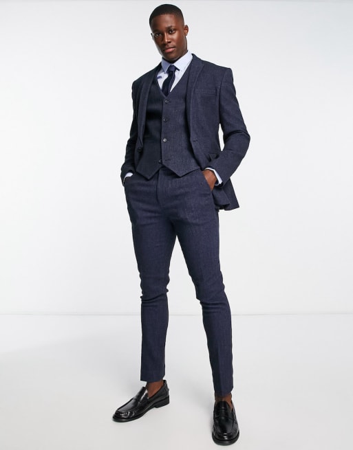 ASOS DESIGN - Costume ajusté en laine mélangée à chevrons - Bleu marine