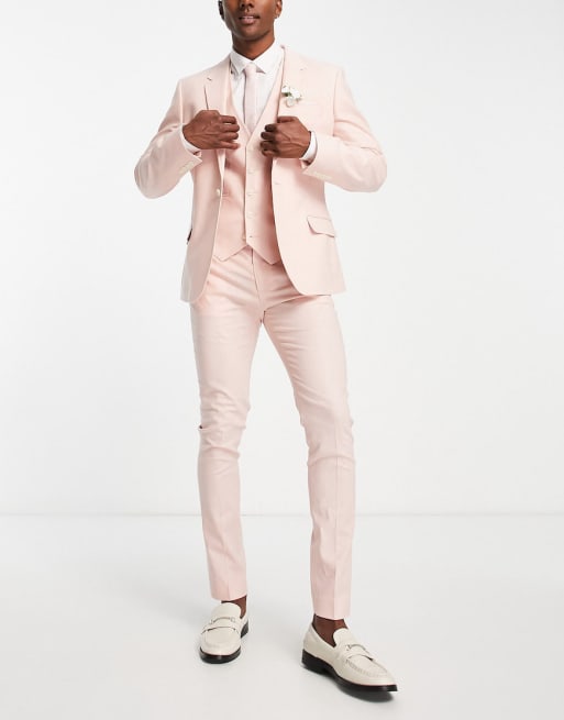 ASOS DESIGN - Costume ajusté en lin mélangé - Rose