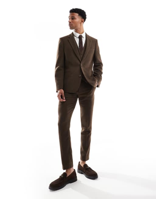 ASOS DESIGN - Costume ajusté en sergé de laine - Marron