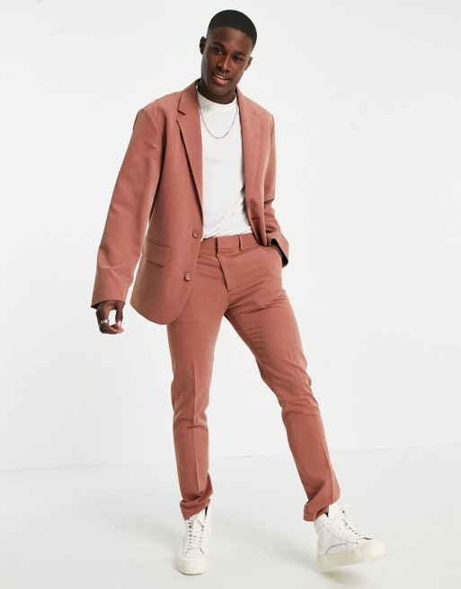 ASOS DESIGN - Costume ajusté et doux à chevrons - Rouille