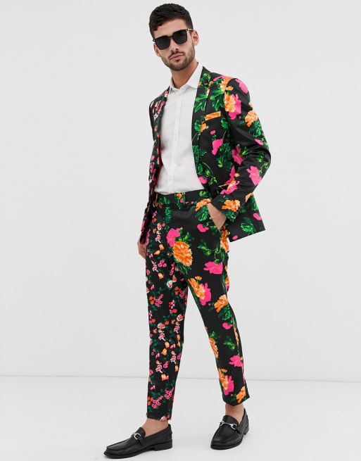 ASOS DESIGN - Costume ajusté motif fleuri et effet coupé-cousu - Noir