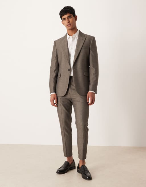 ASOS DESIGN - Costume ajusté rayé en sergé aspect laine - Gris