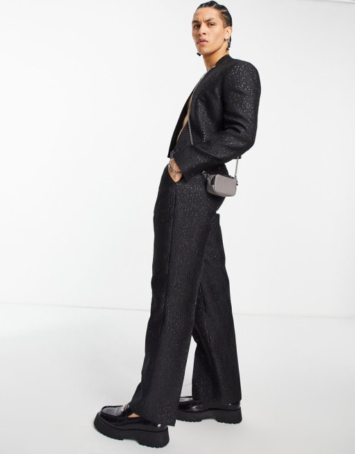 ASOS DESIGN - Costume ajusté sans col en jacquard - Noir métallisé