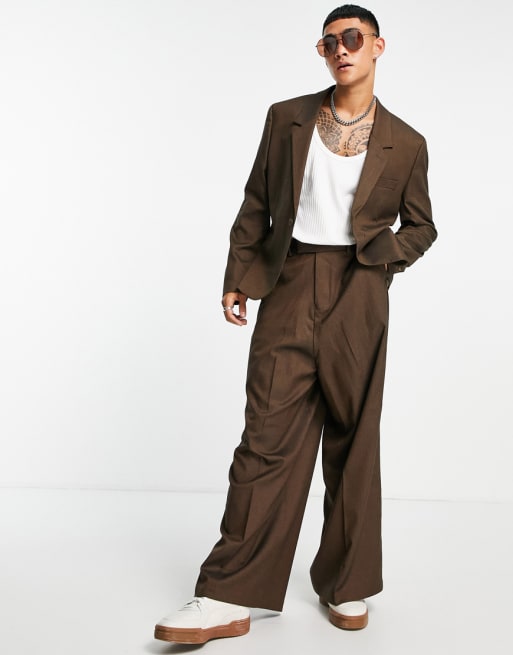 ASOS DESIGN - Costume avec veste longue et ajustée et pantalon ultra large - Marron tex