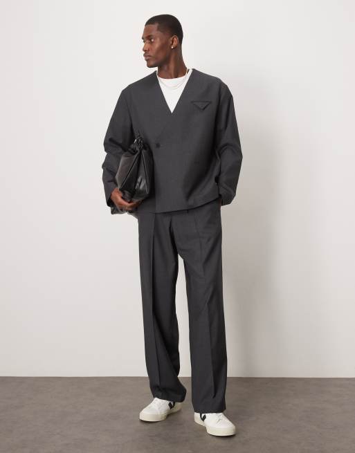 ASOS DESIGN - Costume coupe carrée sans col à double boutonnage - Anthracite