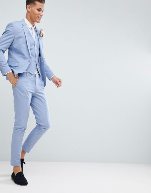 ASOS DESIGN - Costume de mariage ajusté en coton stretch - Bleu cendré