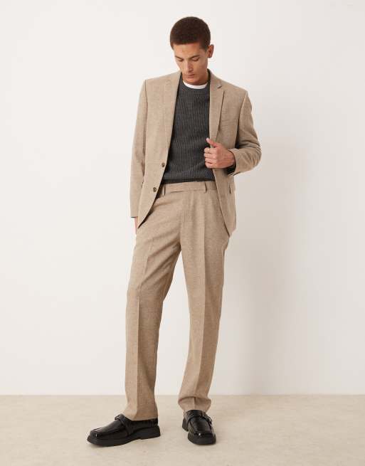 ASOS DESIGN - Costume droit en laine mélangée - Marron