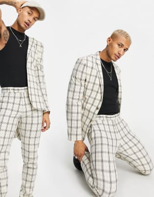 ASOS DESIGN - Costume ultra ajusté à carreaux effet quadrillage - Beige