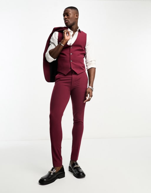 ASOS DESIGN - Costume ultra ajusté - Bordeaux foncé