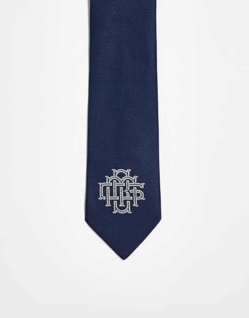 ASOS DESIGN - Cravate à motif brodé - Bleu marine