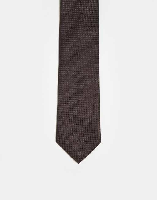 ASOS DESIGN - Cravate en satin texturé - Marron foncé