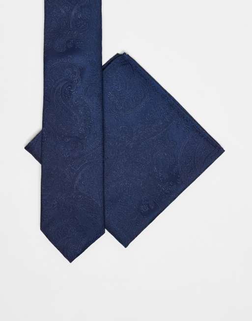 ASOS DESIGN - Cravate et pochette motif cachemire - Bleu marine