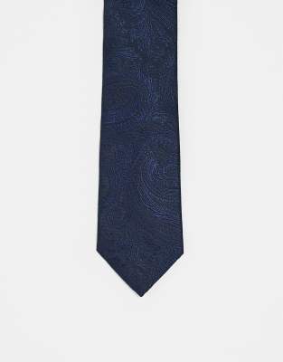 ASOS DESIGN - Cravate fine avec imprimé cachemire - Bleu marine