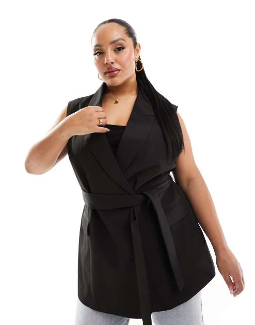 ASOS DESIGN Curve - Blazer ajusté sans manches noué à la taille - Noir