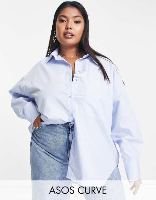 ASOS DESIGN Curve - Chemise dad décontractée avec ourlet plongeant - Bleu chambray
