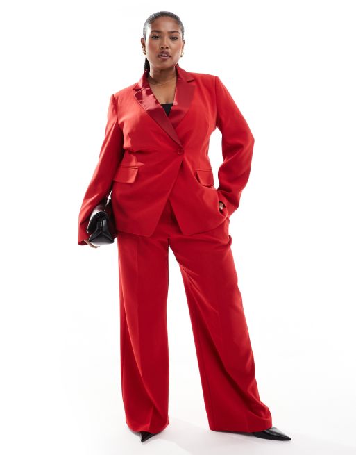 ASOS DESIGN Curve - Ensemble blazer à taille cintrée et pantalon style tailleur - Rouge
