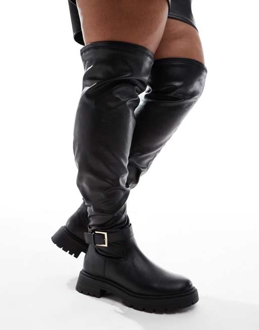 ASOS DESIGN Curve - Kirby - Cuissardes plates à boucles - Noir