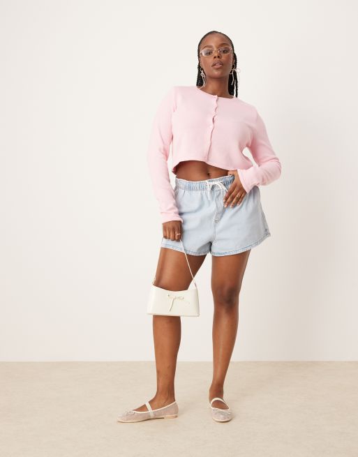 ASOS DESIGN Curve - Short en jean à enfiler - Bleu clair délavé