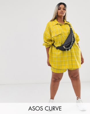 ASOS DESIGN Curve - Tailleur à carreaux avec veste façon chemise et short - Jaune