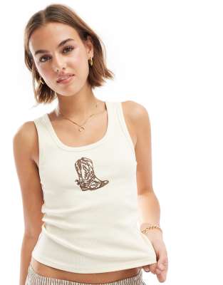 ASOS DESIGN - Débardeur à broderie cowboy - Écru
