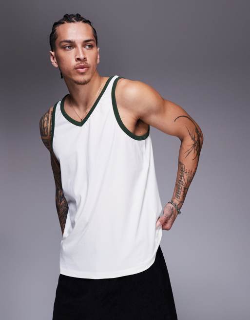 ASOS DESIGN - Débardeur à col V et coutures contrastantes - Crème
