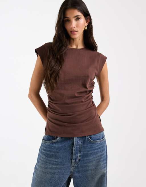 ASOS DESIGN - Débardeur à taille corsetée et épaules structurées - Marron
