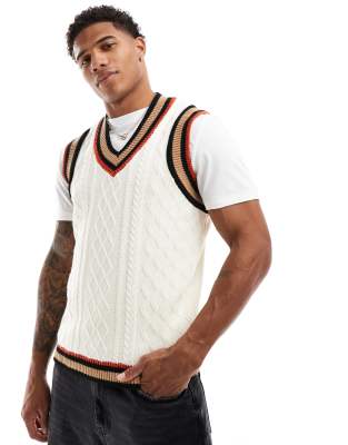 ASOS DESIGN - Débardeur col en V en maille torsadée à liserés - Écru
