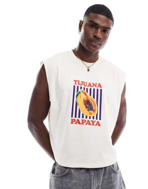 ASOS DESIGN - Débardeur coupe carrée oversize à imprimé fruits - Crème