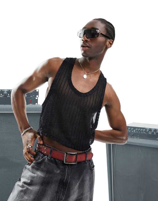 ASOS DESIGN - Débardeur court décontracté en tissu côtelé transparent pailleté