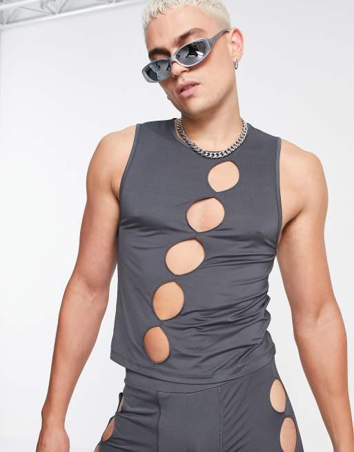ASOS DESIGN - Débardeur court moulant d'ensemble avec découpes sur le devant - Gris