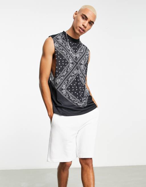 ASOS DESIGN - Débardeur décontracté avec imprimé bandana sur l'ensemble - Noir