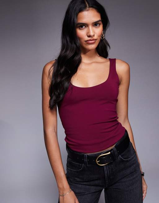 ASOS DESIGN - Débardeur double épaisseur à encolure carrée - Bordeaux
