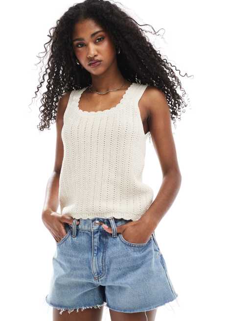 ASOS DESIGN - Débardeur en maille à bords festonnés - Écru