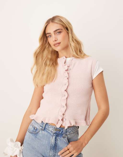 ASOS DESIGN - Débardeur en maille à bords volantés - Rose