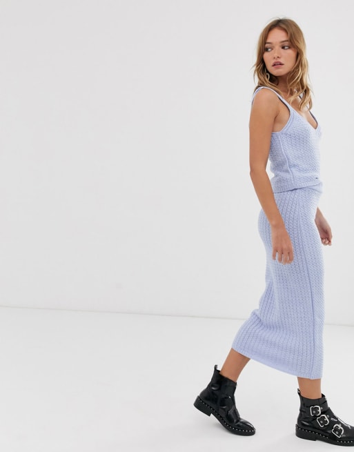 ASOS DESIGN - Débardeur en maille à surpiqûres et jupe mi-longue (ensemble)