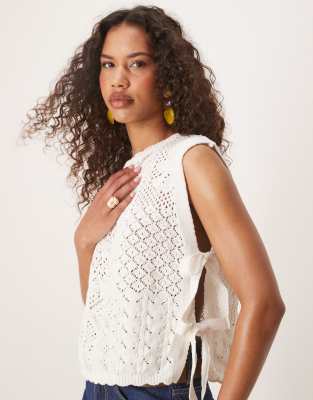 ASOS DESIGN - Débardeur en maille fantaisie style patchwork avec liens noués sur les côtés - Blanc