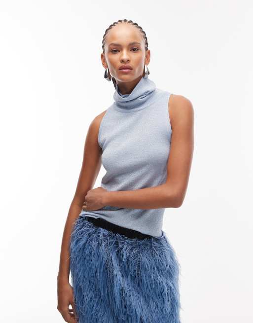 ASOS DESIGN - Débardeur en maille pailletée à col roulé - Bleu pastel