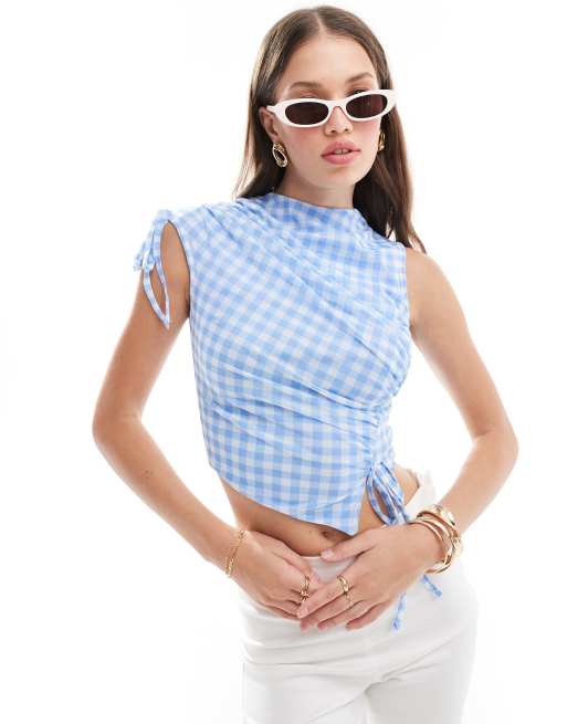 ASOS DESIGN - Débardeur froncé en tulle - Vichy bleu