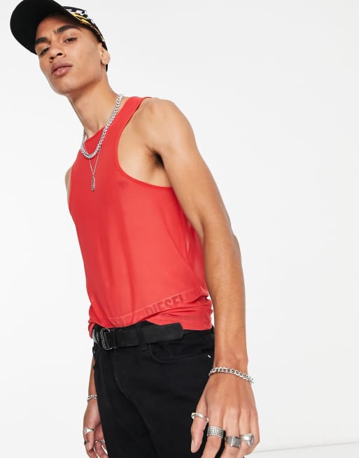 ASOS DESIGN - Débardeur moulant avec dos et devant nageur en tulle - Rouge