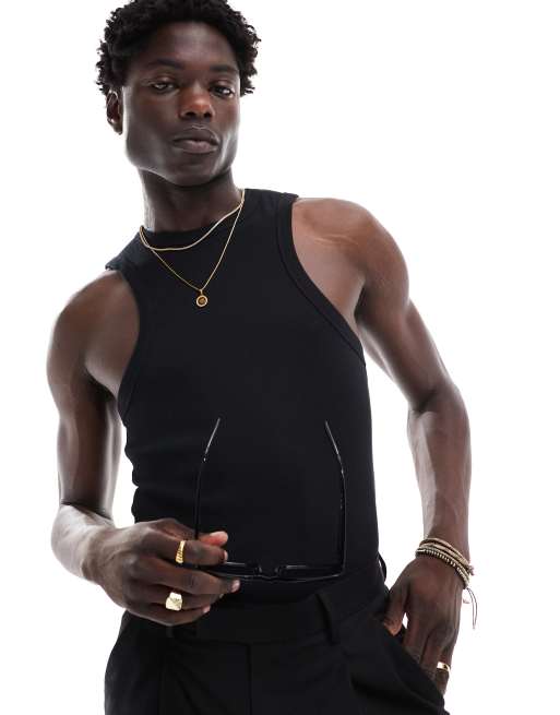 ASOS DESIGN - Débardeur moulant côtelé coupe nageur - Noir
