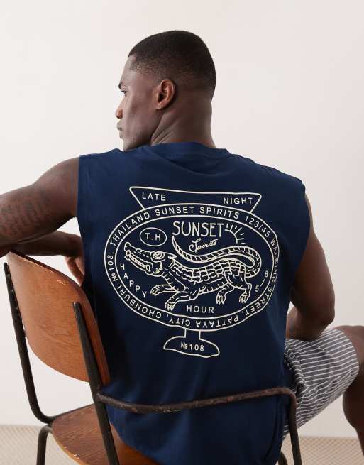 ASOS DESIGN - Débardeur oversize à imprimé crocodile au dos - Bleu marine