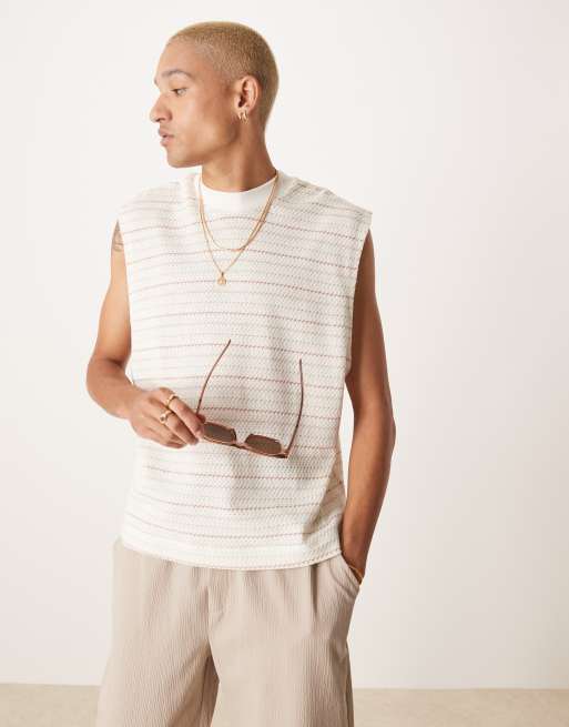 ASOS DESIGN - Débardeur oversize coupe carrée à rayures texturées - Neutre