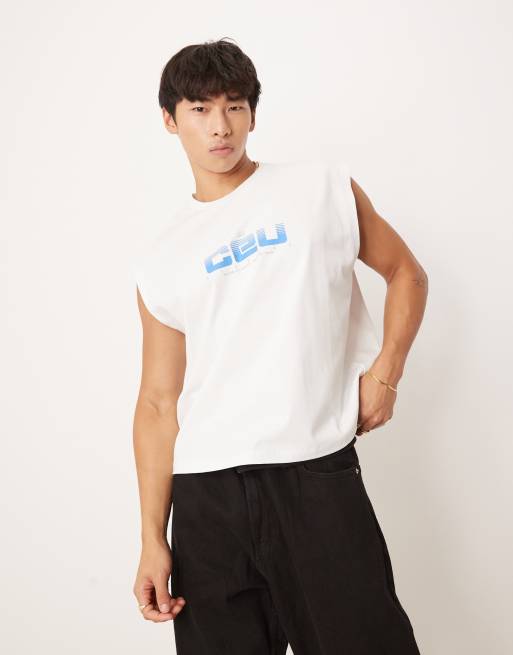 ASOS DESIGN - Débardeur oversize coupe carrée avec imprimé - Blanc
