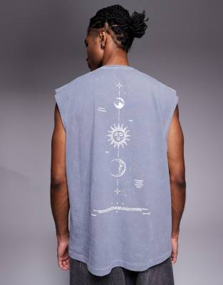 ASOS DESIGN - Débardeur oversize épais avec imprimé vertical au dos - Gris délavé