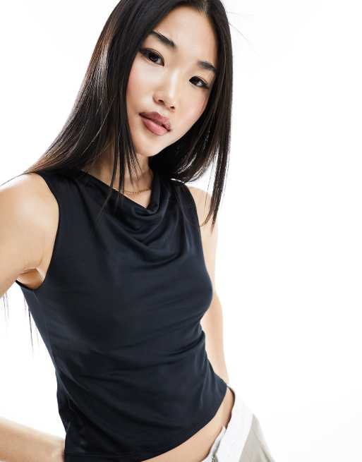 ASOS DESIGN - Débardeur près du corps à col bénitier en tissu doux à double épaisseur - Noir