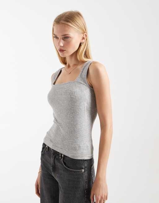 ASOS DESIGN - Débardeur sans coutures à nervures et encolure dégagée avec maintien - Gris chiné