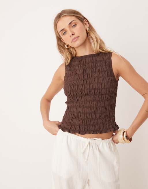 ASOS DESIGN - Débardeur sans manches froncé - Chocolat